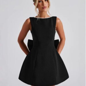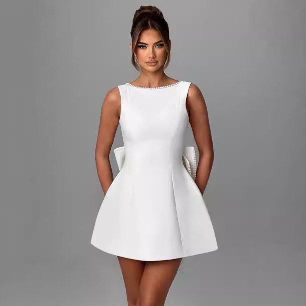 Big-Bowed Pearls Backless Summer Dress