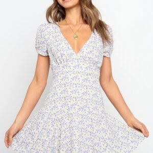 Deep V-neck Short Sleeve Waist-controlled Dress