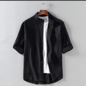 Men’s Linen Stand Collar Loose Shirt