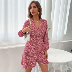 Off-the-shoulder Lantern Sleeve Pleated Dress