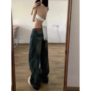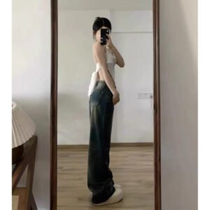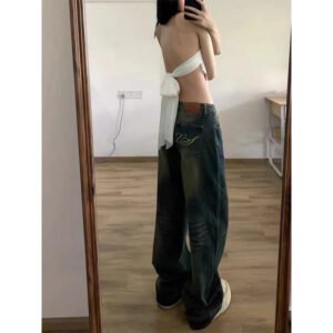 Plus Size Vintage Jeans Women’s High Waist Baggy Straight Trousers