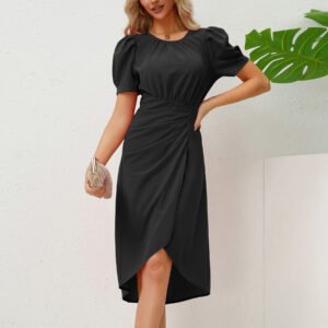 Round Neck Puff Sleeve Slim Temperament