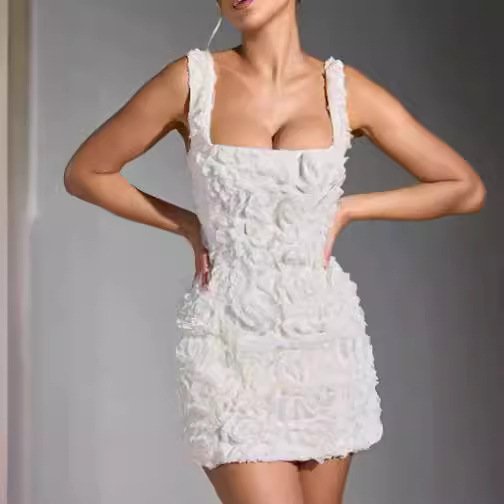 Women's Graceful Tube Top Splicing Pullover Solid Color Flower Length Dress quantity